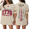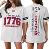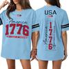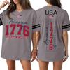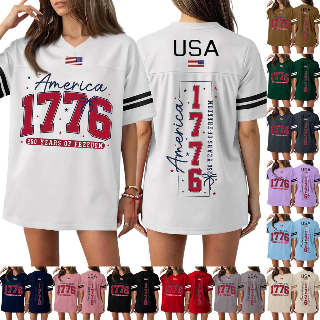 Women's Casual Fashion V-Neck Sports Independence Day Print Short Sleeve Sports T-Shirt Top