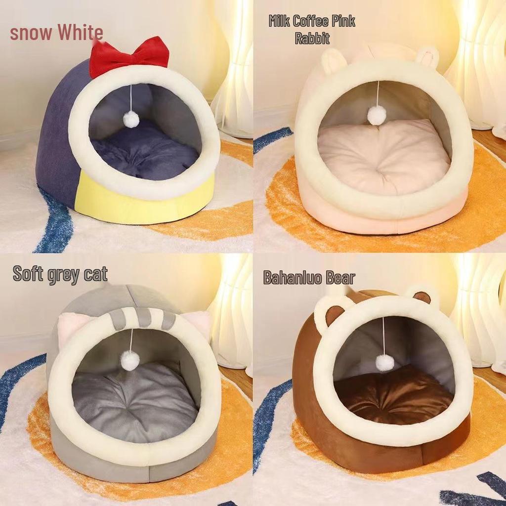 Cozy Cat-Shaped Dog House: Warm Half-Closed Bed Mat for Cats & Pets