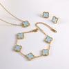 Popular four-leaf clover three-piece set 18K gold electroplated necklace bracelet stud earrings set light luxury color fashion jewelry