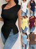 Women's Elegant Wind T-Shirt Summer New Style Slop-Shoulder Slim Fit Short Sleeve Solid Color Top