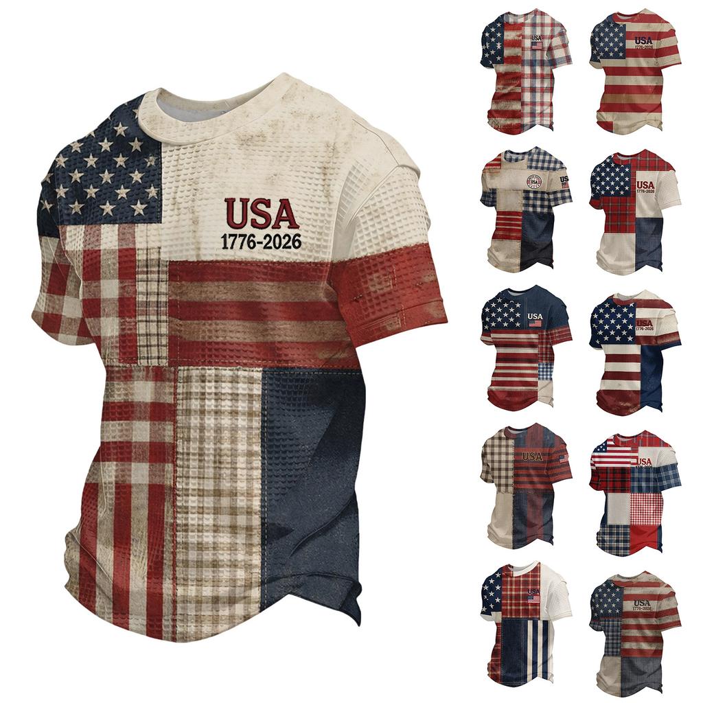 Men's Loose And Casual Flag-print T-shirt, Short Sleeve Shirt