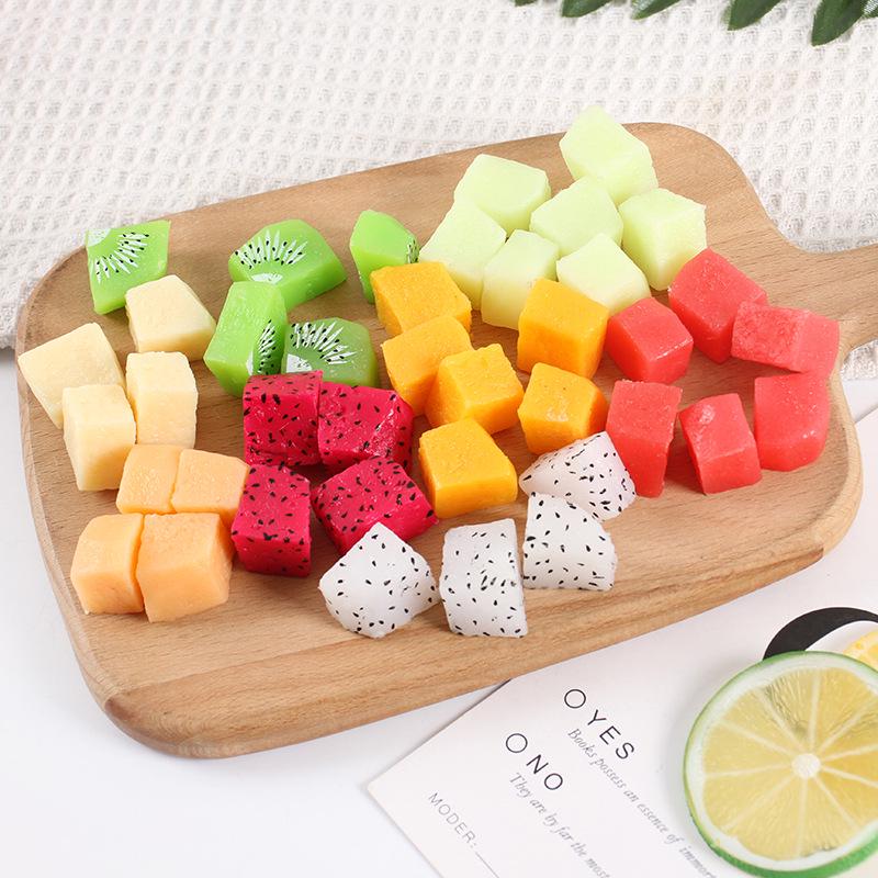 Mini Fruit Salad DIY Edible Toy: Mango, Pitaya, Kiwi Slices Simulation Cubes.