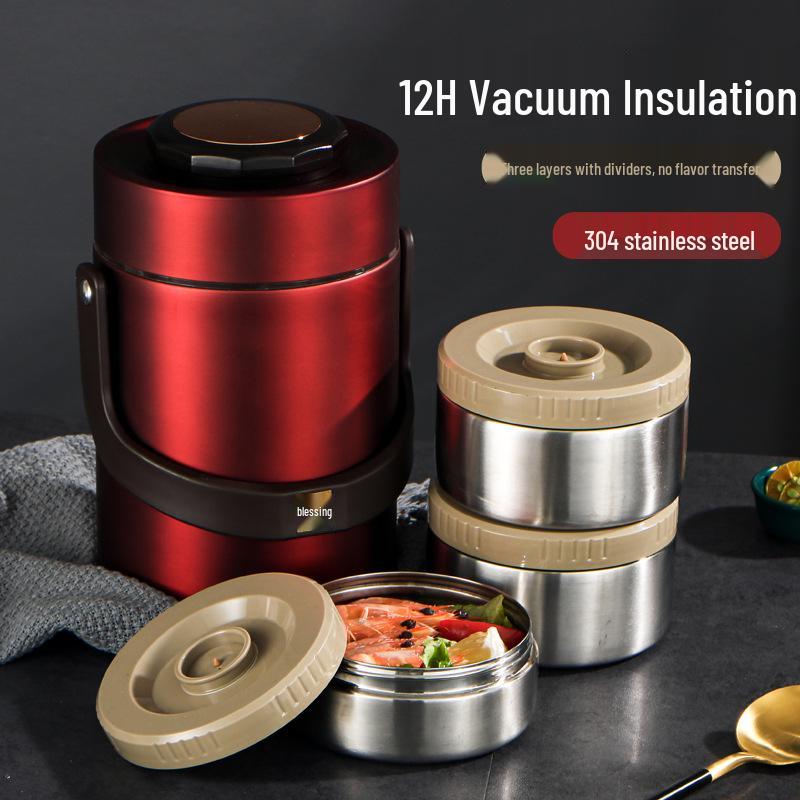 Stainless Steel 3-Layer Insulated Lunch Box, Large Capacity for Students & Office Workers, Compartmented & Portable