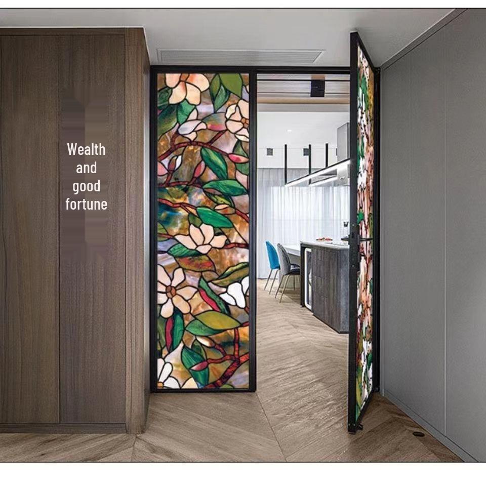 Static-Free Frosted Glass Privacy Film - Opaque, Light-Transmitting Sticker with Floral and Brocade Design