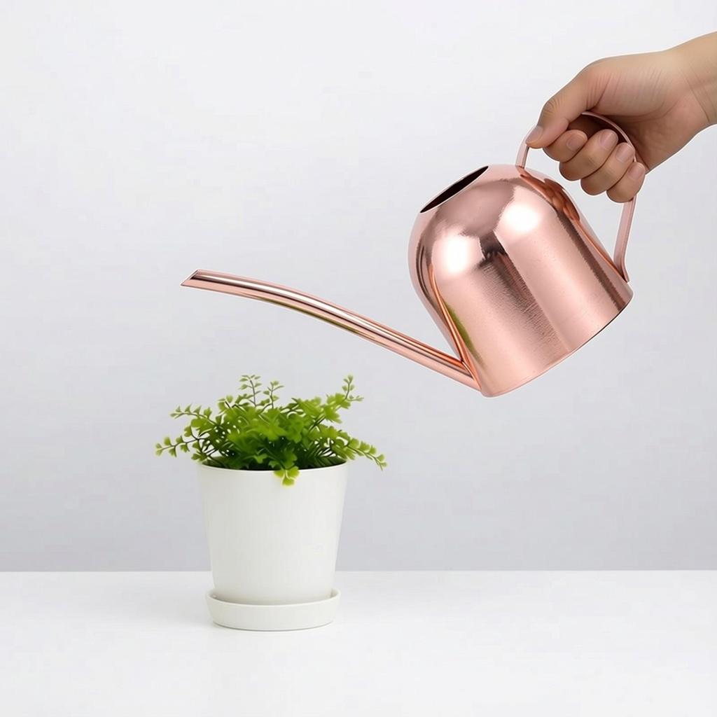 Rose Gold Stainless Steel Watering Can with Spout, Retro Style, 1000ML for Succulents and Green Plants