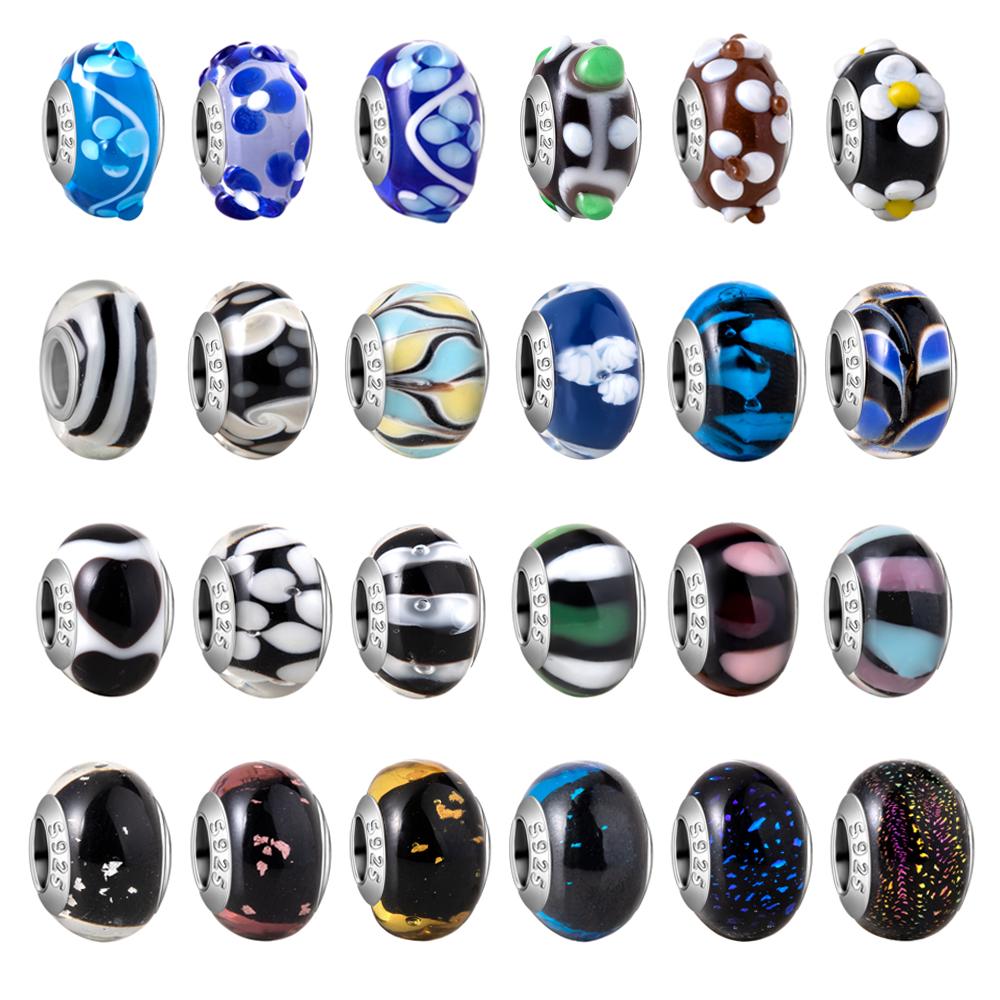 Matte Black Collection copper ThreeDimensional FlowerStriped Glass Bead Charms Compatible With Do It Yourself Bracelets Necklaces Exquisite Pieces P