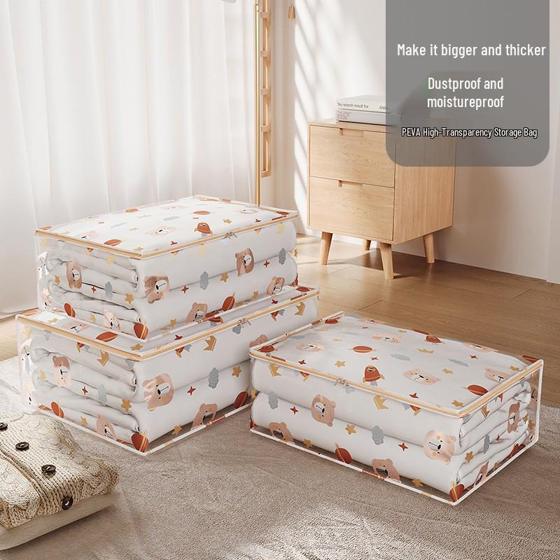 Thickened Transparent Space Bear Quilt Storage Bag - Dustproof, Printed, Large Capacity, 3D Design