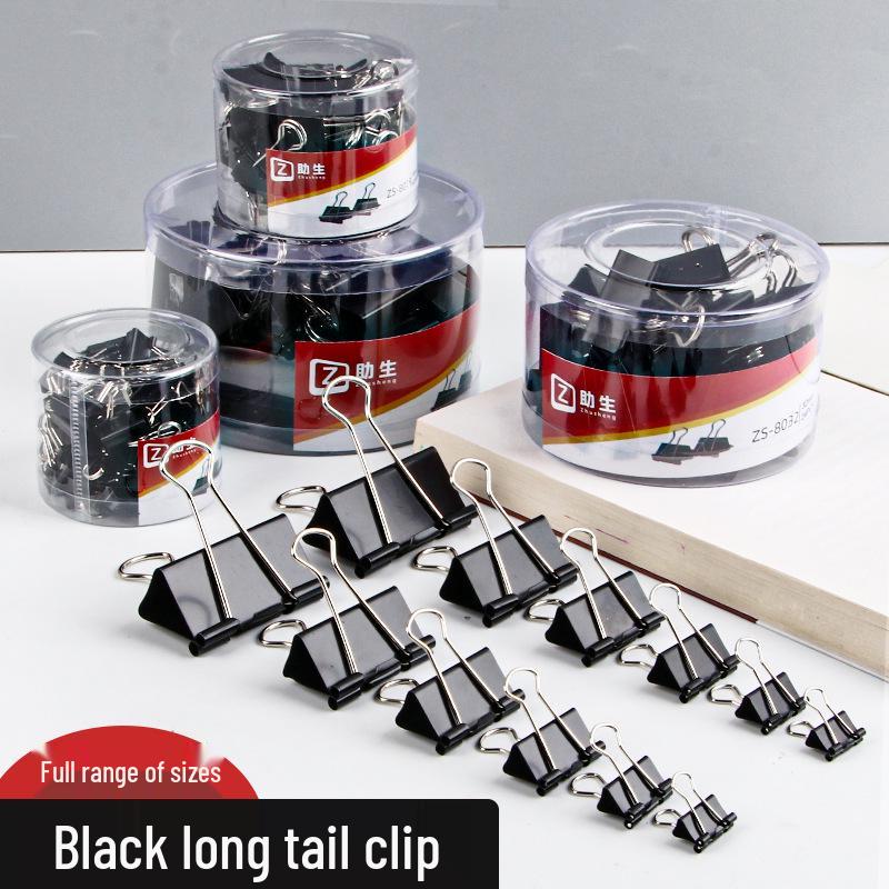 Black Metal Long Tail Clips - Stationery Folder for Documents, Student Papers, and Office Supplies.