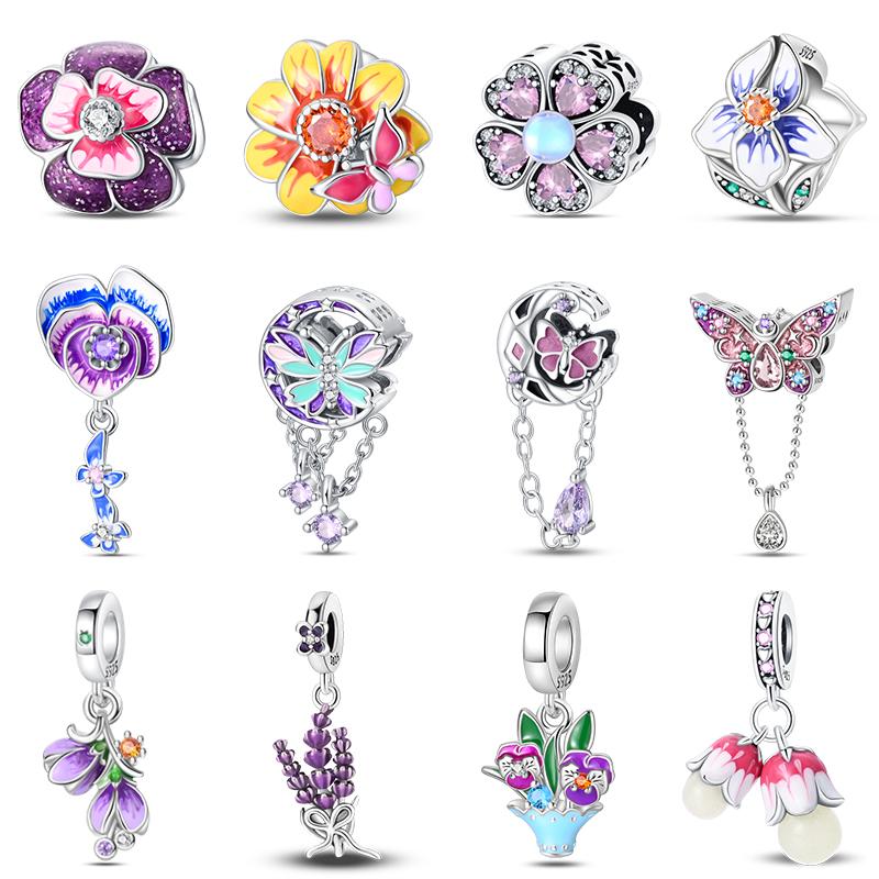 copper Butterfly Tulip Iris Flower Charm Bead Charms Bead Charms Compatible With Pandach Authentic Bracelets Fine Do It Yourself Valentine Jewellery G