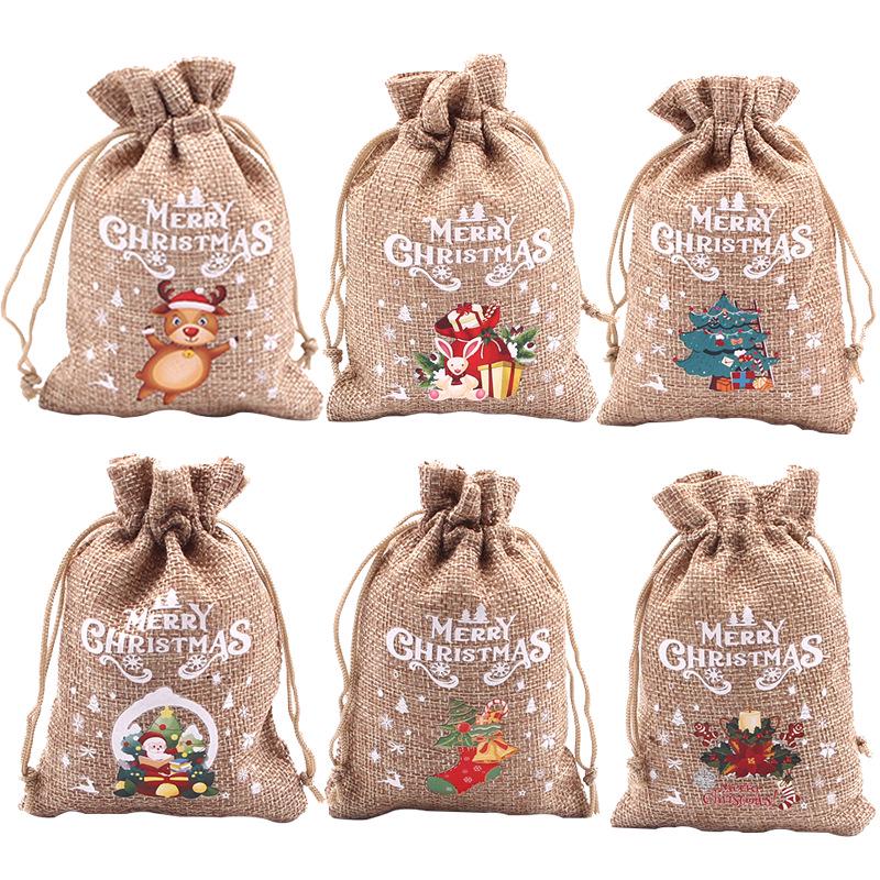 Jute-Style Christmas Gift Bag with Drawstring Closure - Small Candy & Apple Storage