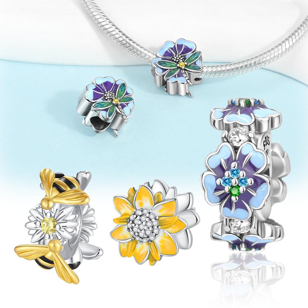 Charm Bead Charms Plata Flower Bee Dragonfly copper Plated Ideal For Charm Bead Charms copper Plated Authentic Bracelets for Jewellery Making