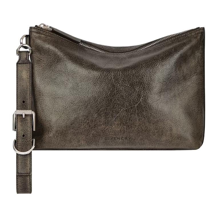 Givenchy Voyou Metal Buckle Zipper Closure Distressed Leather Clutch Men clutch Beige Brown BK60EYK1XT-288