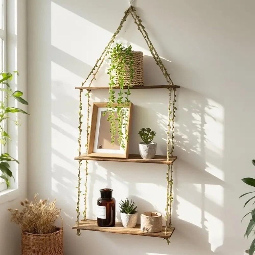 2/3 Layers Hanging Shelves Woven Hanger Wall Rack New Wall Shelves Bedroom Decor