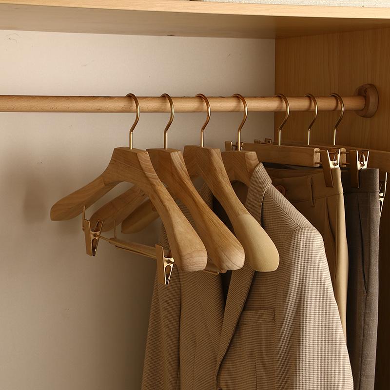 Pure Natural Camphor Wood Wide Shoulder Adult Suit Hanger - High-End Solid Wood Wardrobe Clothes Rack
