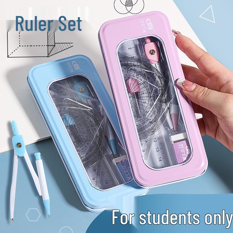 7-Piece Student Exam Ruler Set: Compass, Protractor, Triangle, and Straight Ruler