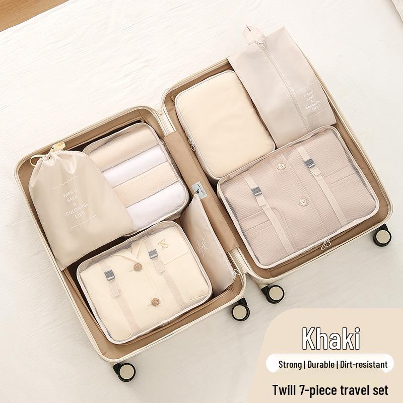 Seven-Piece Travel Packing Bag Set: Clothes, Underwear, Cosmetics, and More.