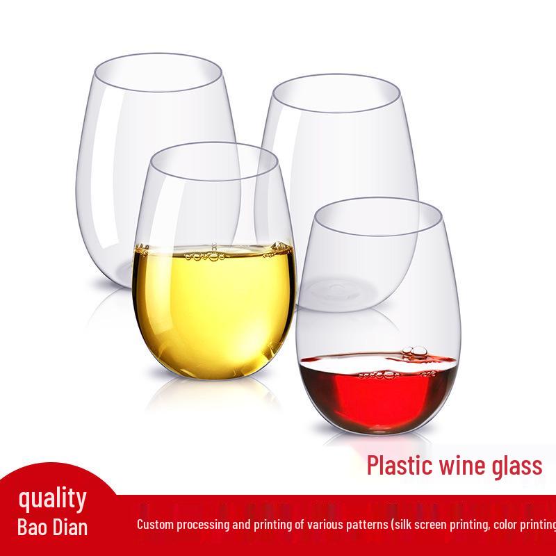 PET Plastic Egg-Shaped Footless Wine Glass, 12oz-16oz, Transparent