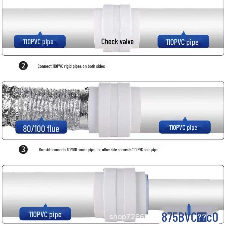 80 CFM Bathroom Exhaust Fan with Backdraft Damper, Toilet Pipe Check Valve, Connects to 75/110 PVC, Anti-Odor