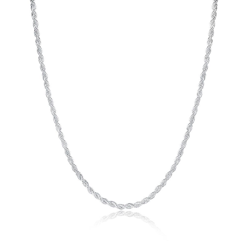 Korean Style Trendy Jewelry: Plated Silver 2MM Twisted Rope Chain Necklace.