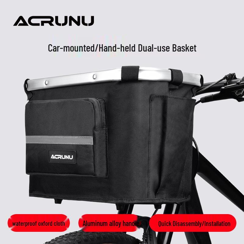 ACRUNU Waterproof Front Basket for Mountain Bike & Electric Scooter - Commuting Foldable Aluminum Alloy Handheld Basket