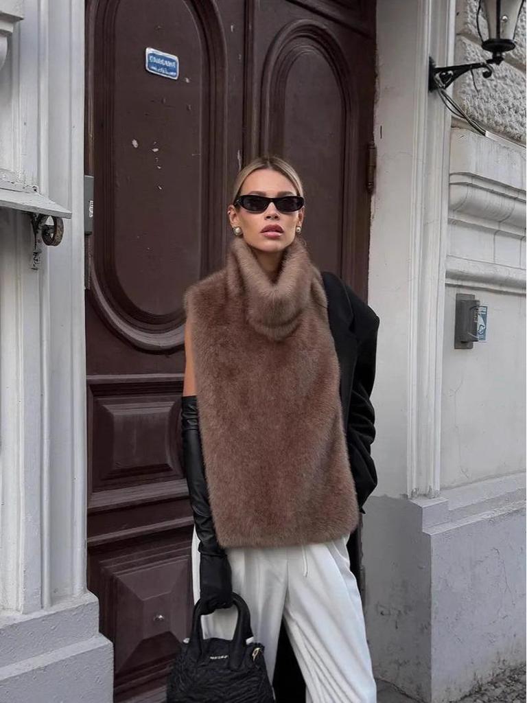 European & American Faux Mink Fur Vest: Women's Autumn/Winter Sleeveless Cape with Long Front & Short Back