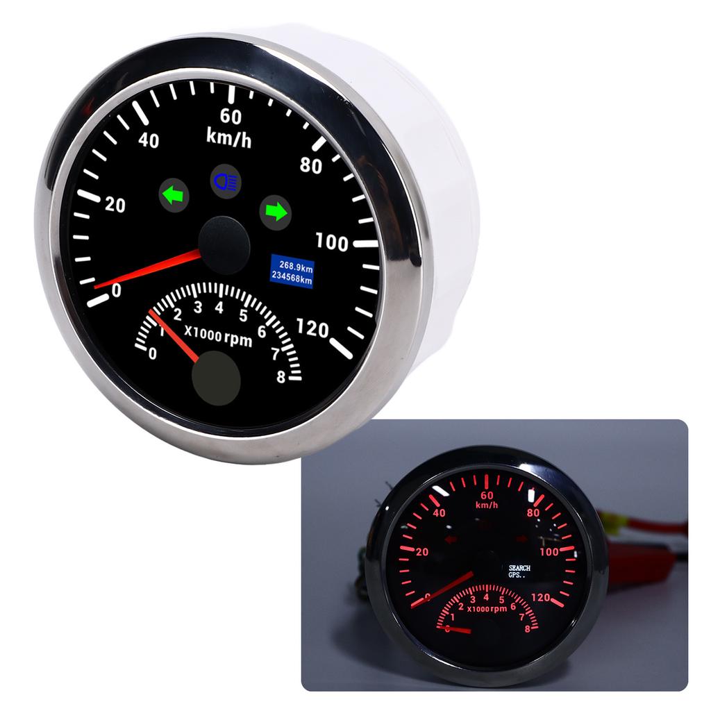 85mm 120kmCelsiush GPS Speedometer 0‑8000rpm Tachometer Gauge LCD Multicolored Backlight for Car Boat Yacht RV Truck