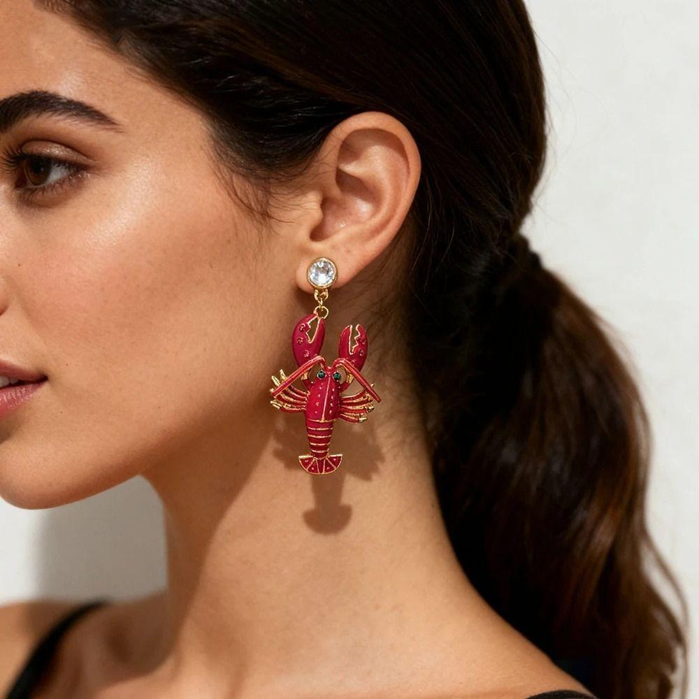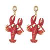 Rhinestone Enamel Stud Earrings Creative Bohemian Dangle Earring Cute Lobster Earrings Holiday