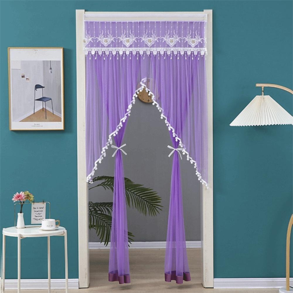 Breathable Lace Sheer Door Curtain Embroidered Door Drape Anti-mosquito Door Curtain Summer