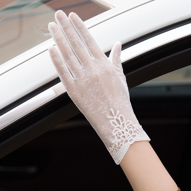 Women’s Fashion White Lace Gloves, Short Breathable Summer Gloves, Anti-Slip Driving Gloves for Wedding Dance Formal
