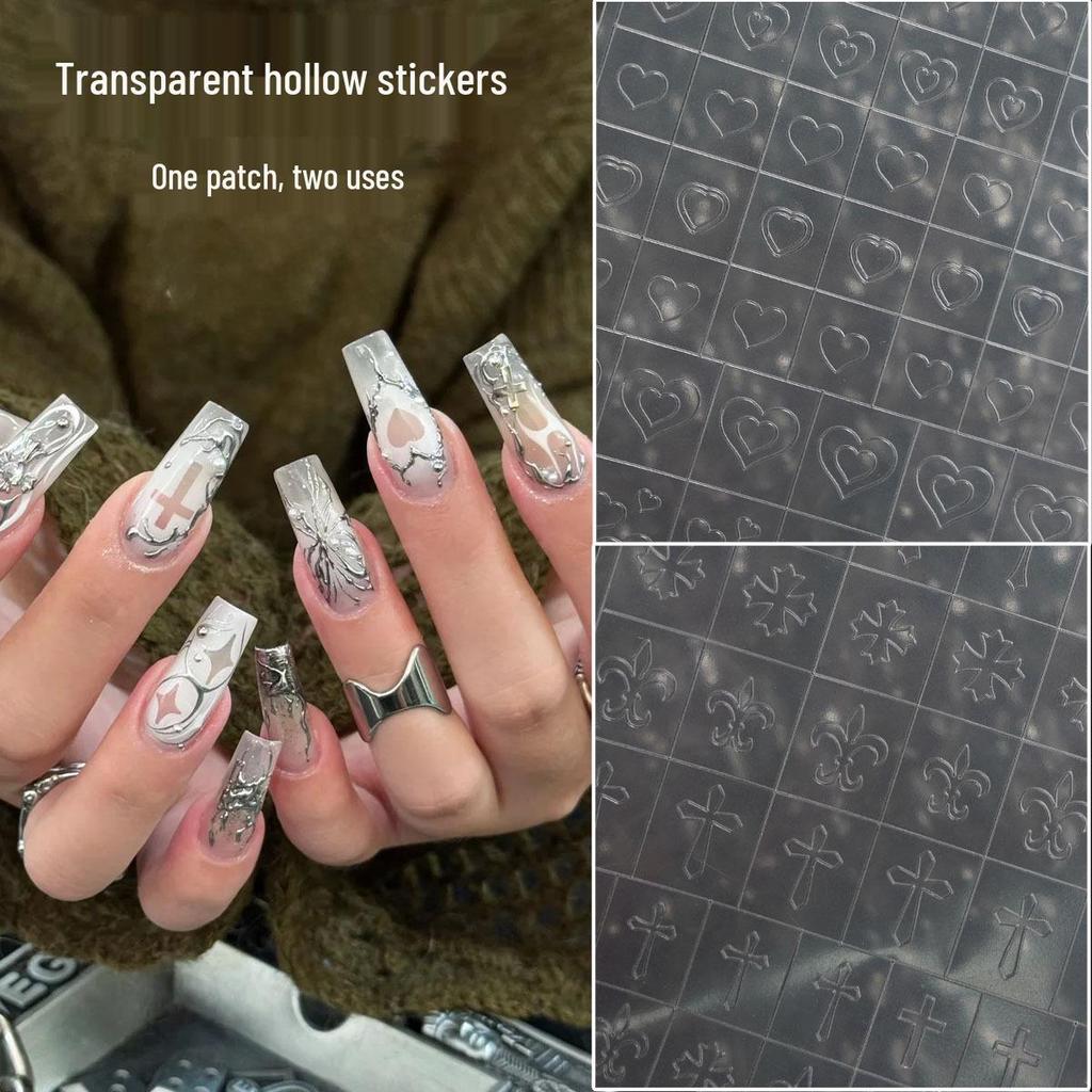 French Hollow Transparent Nail Art Stickers - Stars & Chrome Hearts Gradient Design