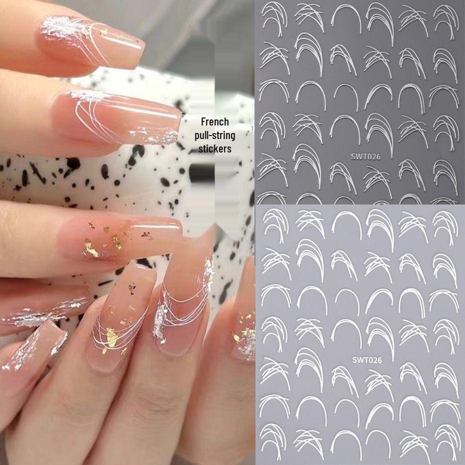 Minimalist French Starburst 3D Nail Stickers - Irregular Line Design