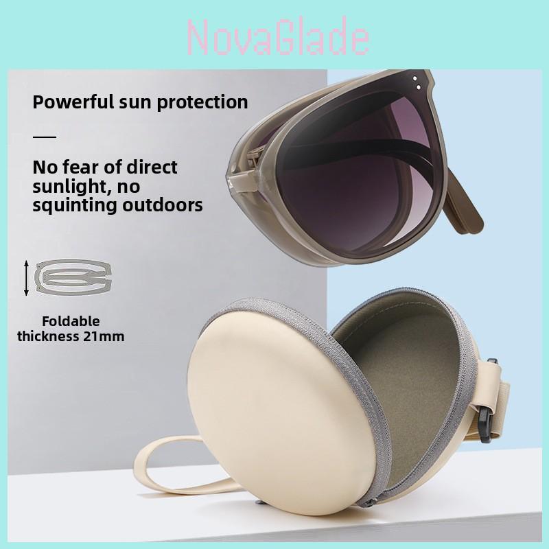 This foldable sunglasses feature a full-coverage oval frame made of durable PC material, measuring approximately 5 inches wide. The gray polycarbonate lenses offer UV400 protection with a 3-class shading level, reducing glare and blocking harmful rays. Suitable for outdoor activities, driving, or fashion-forward outings, they combine style and practicality. Easy to clean with a damp cloth, they are ideal for summer travel and daily wear.