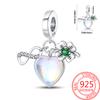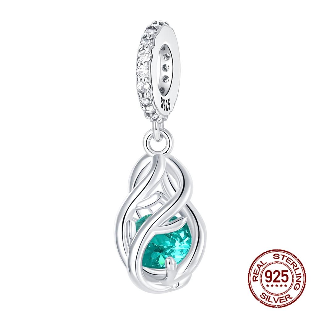 copper Scrollwork Vine Openwork Design Green Zircon Pendant Compatible With Authentic Charm Bracelets Women Do It Yourself Jewellery Gift