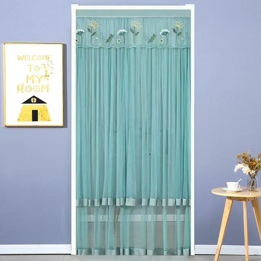 Punching Free Lace Embroidered Door Curtain Double Layer Door Drapes Entrance Curtain Girl Room