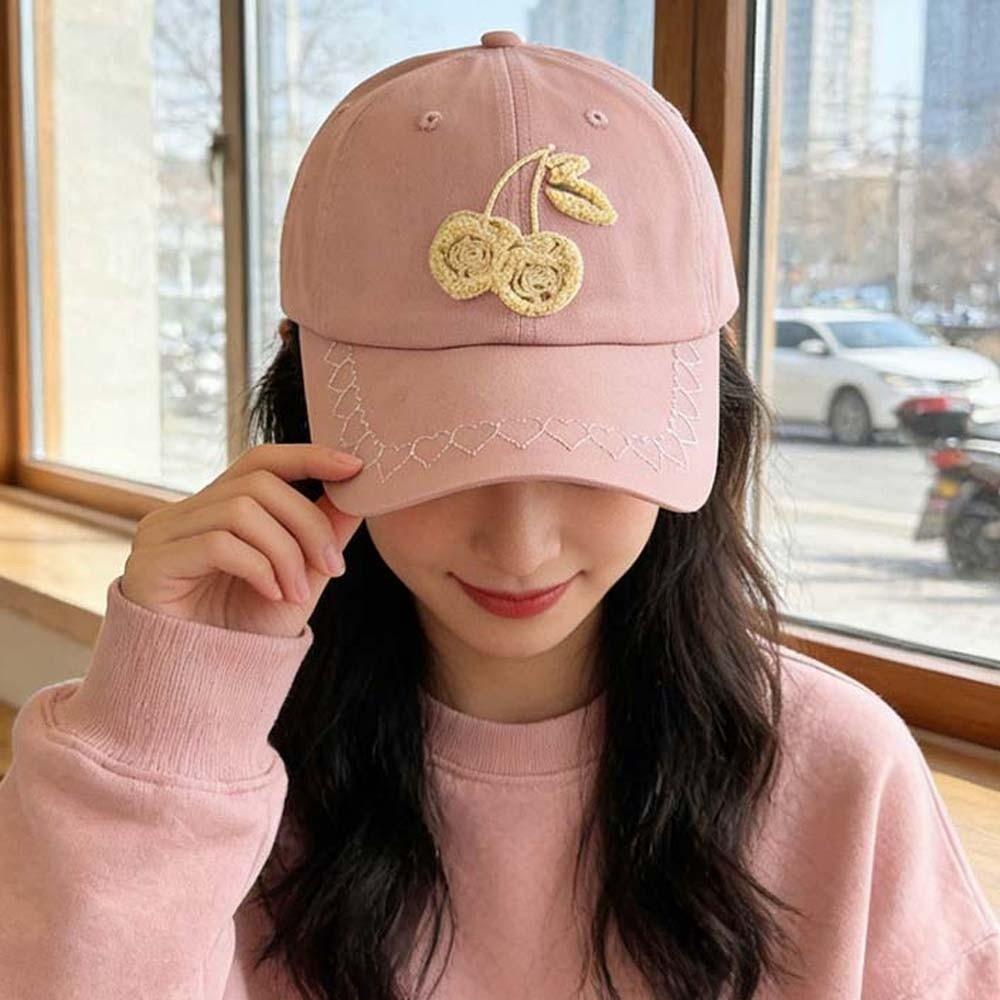 Sunscreen Cherry Baseball Cap Adjustable Sunshade Casquette Casual Embroidered Peaked Hat Sports