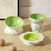Green Cat Canned Food Bowl Rabbit Flower Pet Feeding Bowl Creative Ceramic Cat Bowl Pet Supplies