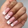 24Pcs Press on Nails Long False Nails White Bows French False Nails Stick on Nail For Parties Weddings And Daily Wear