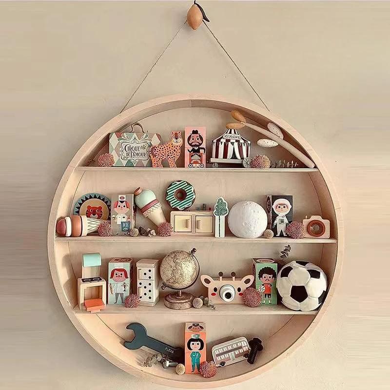 Wall Mounted Storage Rack Background Wall Decoration Toy Classification Circular Hanging Wooden Frame
