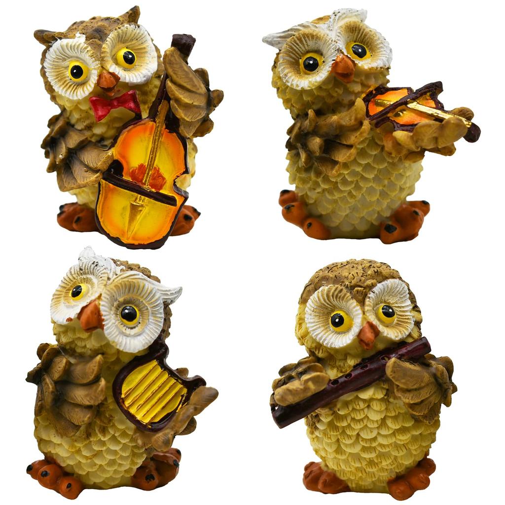 Set Contents: Four mini owl statues in different styles.