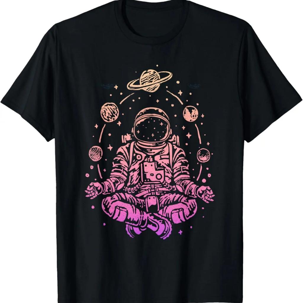 Meditating Astronaut Planets Colorful Lotus Women Meditation T-Shirt