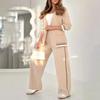 Bu şık Kadın Takım Elbisesi ile tarzınızı yükseltin, trend ve rahat bir görünüm için kontrast oluşturan sportif dokuma ile vurgulanan rahat, bol kesim tasarımına sahiptir. Nefes alabilen polyester kumaştan üretilen bu takım elbise, hem konforu hem de stili garanti ederek ilkbahar ve sonbahar mevsimleri için idealdir.