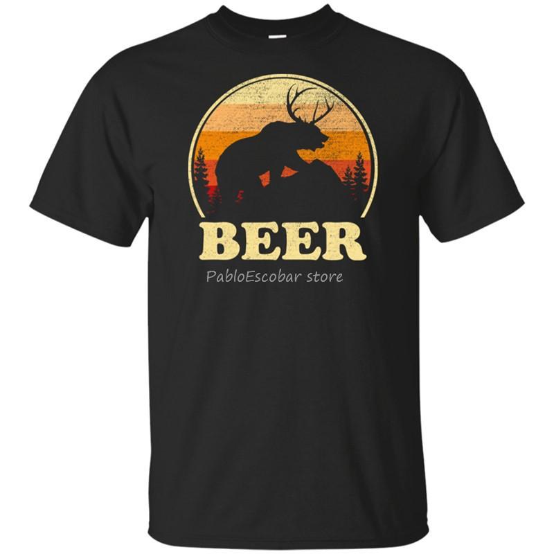 Bear Deer Funny Beer Retro Vintage TShirt Short Sleeve S 2Xl Retro Tee Shirt men brand tshirt summer top tees