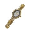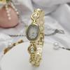 This elegant ladies watch features an integrated metal chain strap composed of multiple ring-shaped links, each adorned with an oval faux gemstone and detailed twisted rope patterns, creating a sophisticated three-dimensional effect. The golden finish offers a high-end jewelry-like luster, ensuring both durability and comfort. At its center lies a classic oval dial with a golden surface, Roman numerals, and simple hands, embodying a retro and elegant style powered by reliable quartz movement.