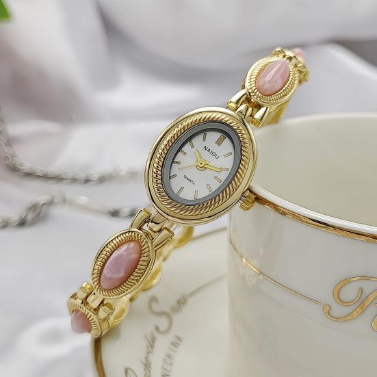 High-Quality Faux Gemstones: Adorned with vibrant oval faux gemstones in diverse color options, this elegant vintage quartz watch provides unique visual layering, complementing various outfits with a jewelry-like luster.
