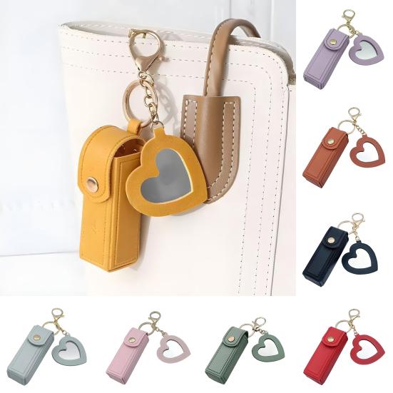 Keychain Lipstick Bag Love Mirror Protective Faux Leather Case Portable Keyring Cell Phones Wallet Car Key Chain