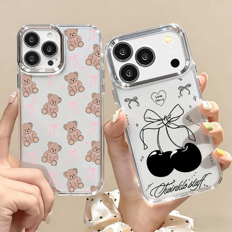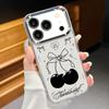 Bowknots Cherry Pattern Case For iPhone 17 Pro Max Plating Lens Frame Clear Soft Cover For iPhone 16 15 14 13 Pro Max 11 16E 17E