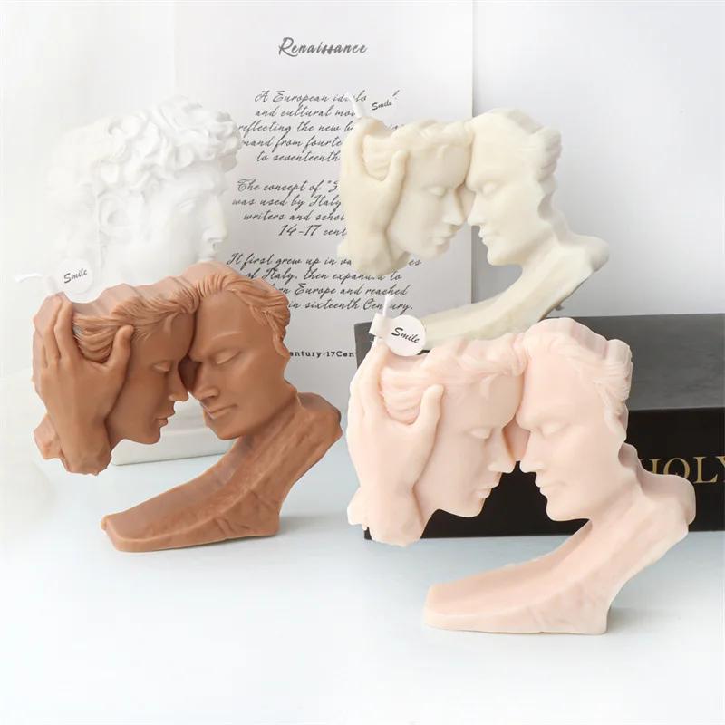 DIY Lovers Kiss Candle Silicone Mold Nordic Style Simple Face Kissing Sculpture Resin Gypsum Silicone Mold wedding decor