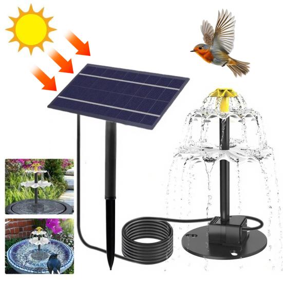 Soothing Three-Tiered Cascade Design: This solar fountain features a beautifully crafted three-tiered resin structure that creates a charming cascade effect. The gentle flow of water produces a relaxing gurgling sound, enhancing the ambiance of any garden or terrace while attracting various bird species for delightful outdoor interaction.