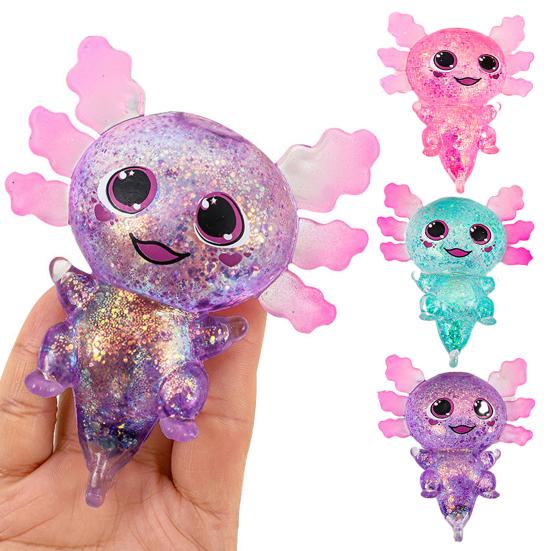 Experience soothing stress relief with the squeeze toy, featuring a soft, waxy texture that slowly rebounds for a calming touch. Its transparent glitter material adds a sparkling, eye-catching effect, making it both fun and visually appealing. Designed in an adorable salamander shape, this toy combines cuteness with tactile comfort.