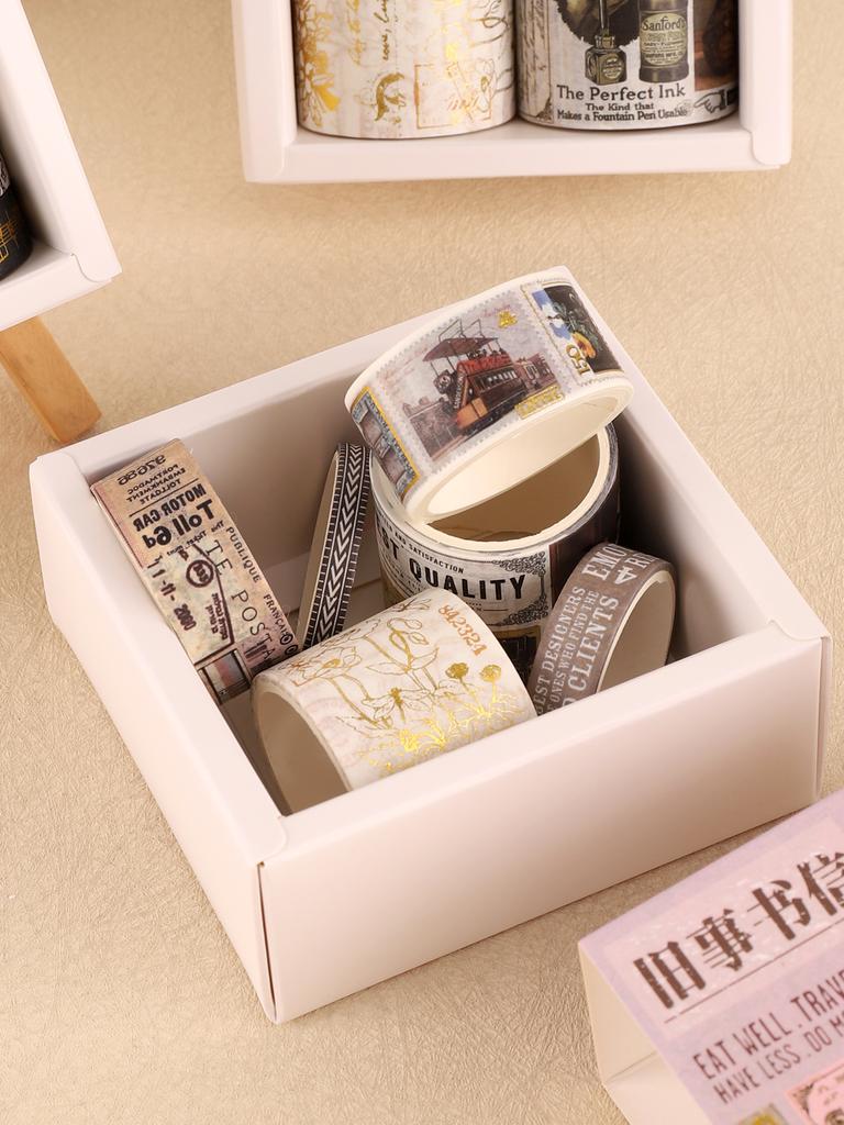 8rolls/Box Vintage Bronzing Washi Tape Decorative Masking Tape Notebook Diary Journaling Scrapbooking Supplies School Washi Tape